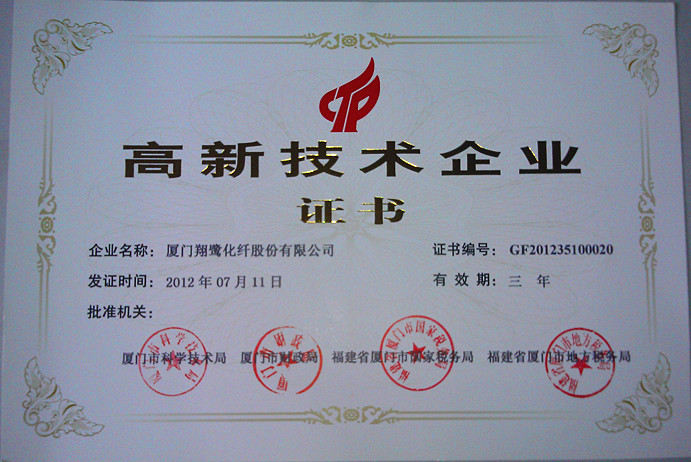 祝賀翔鷺化纖榮獲“高新技術(shù)企業(yè)”“納稅特大戶”稱號(hào)根據(jù)《高新技術(shù)企業(yè)認(rèn)定管理辦法》和《高新技術(shù)企業(yè)認(rèn)定管理工作指引》有關(guān)規(guī)定及全國高新技術(shù)企業(yè)認(rèn)定管理工作領(lǐng)導(dǎo)小組辦公室《關(guān)于廈門市2012年第二批高新技術(shù)企業(yè)復(fù)審備案申請的復(fù)函》現(xiàn)確認(rèn)廈門翔鷺化纖股份有限公司為高新技術(shù)企業(yè),頒發(fā)“高新技術(shù)企業(yè)證書”授予“高新技術(shù)企業(yè)”稱號(hào)。