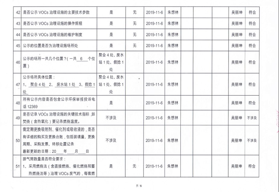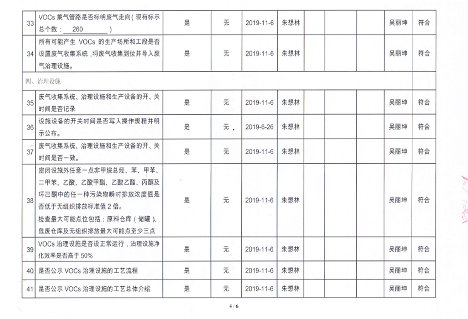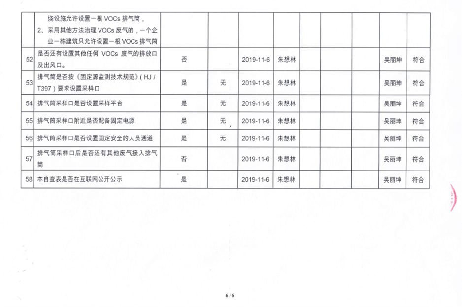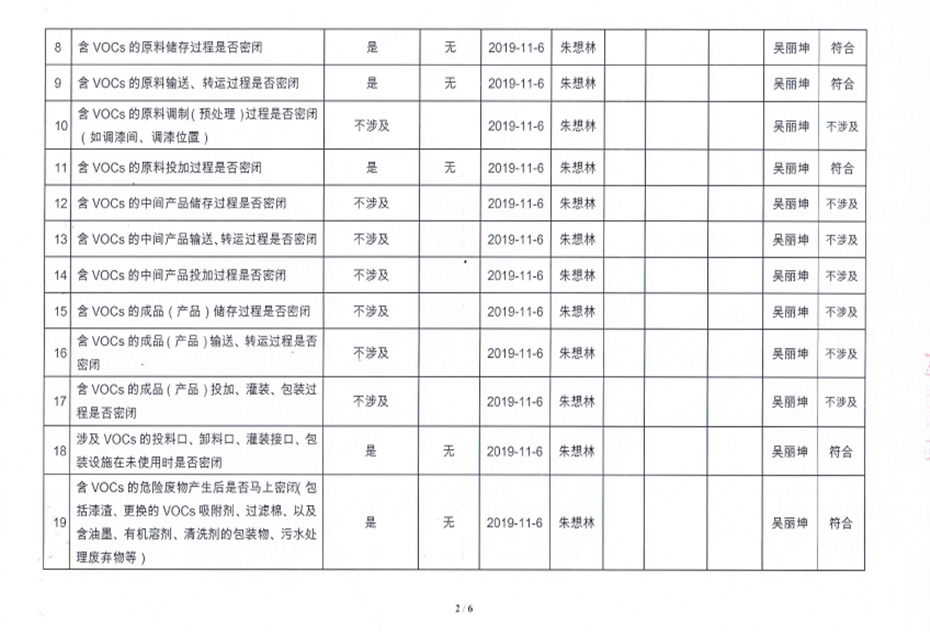 揮發(fā)性有機(jī)物污染防治企業(yè)自查表【2019(2)】