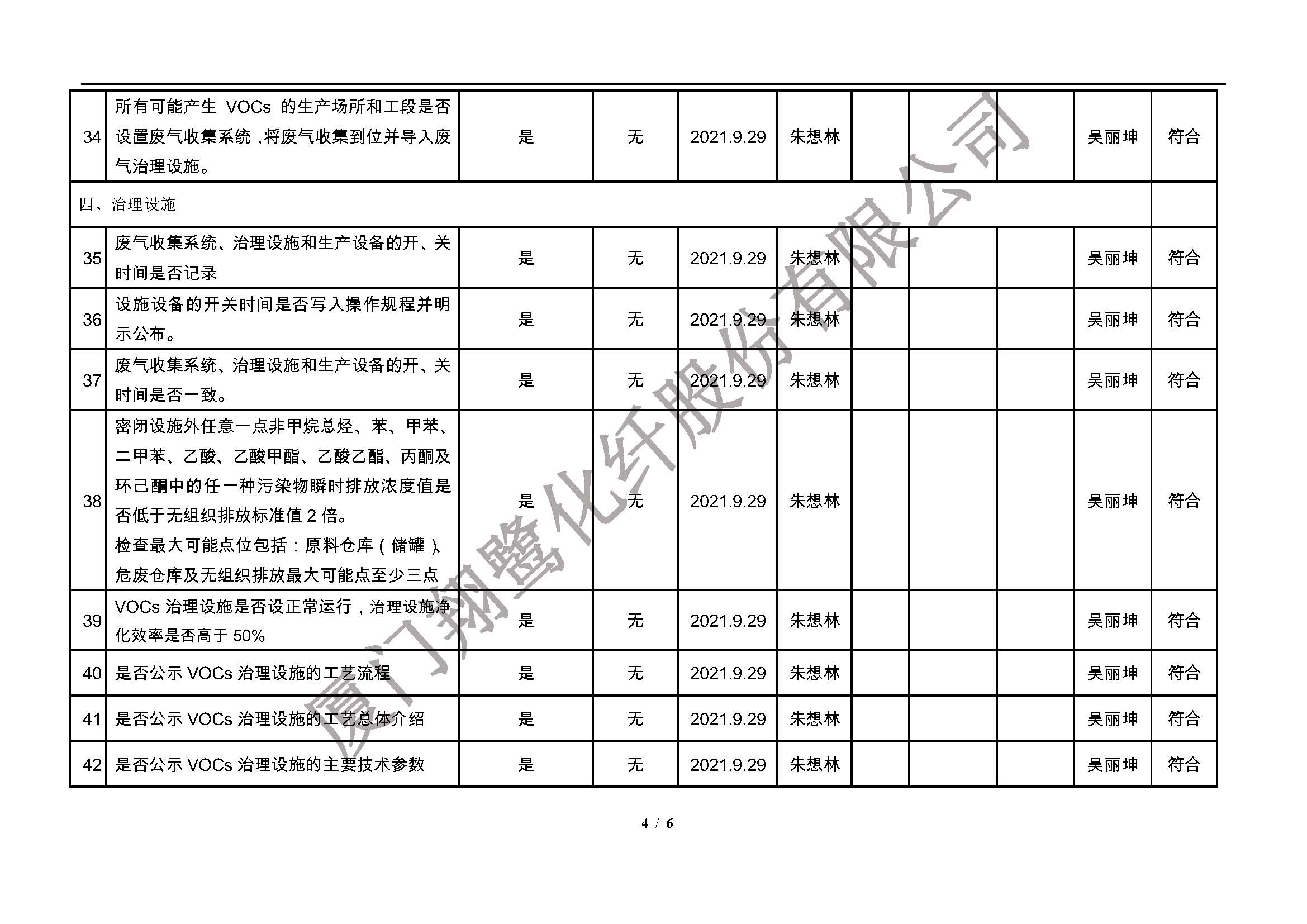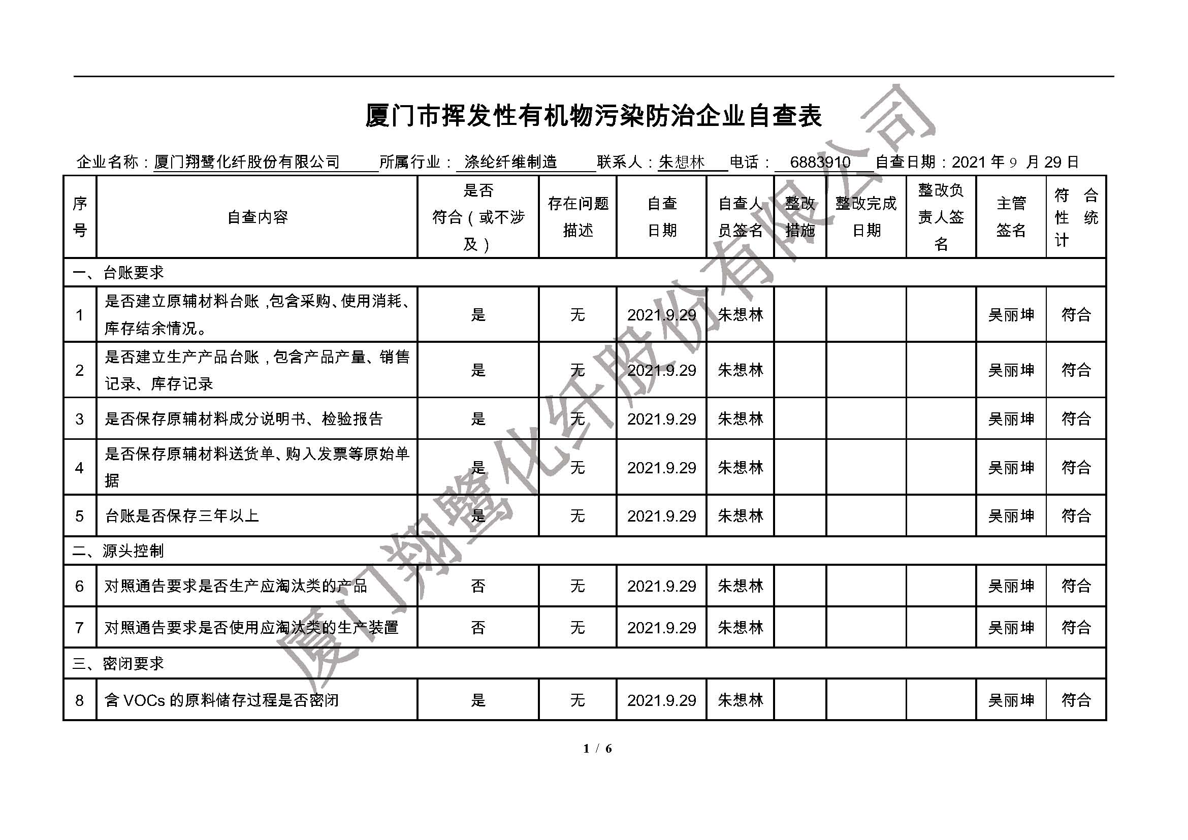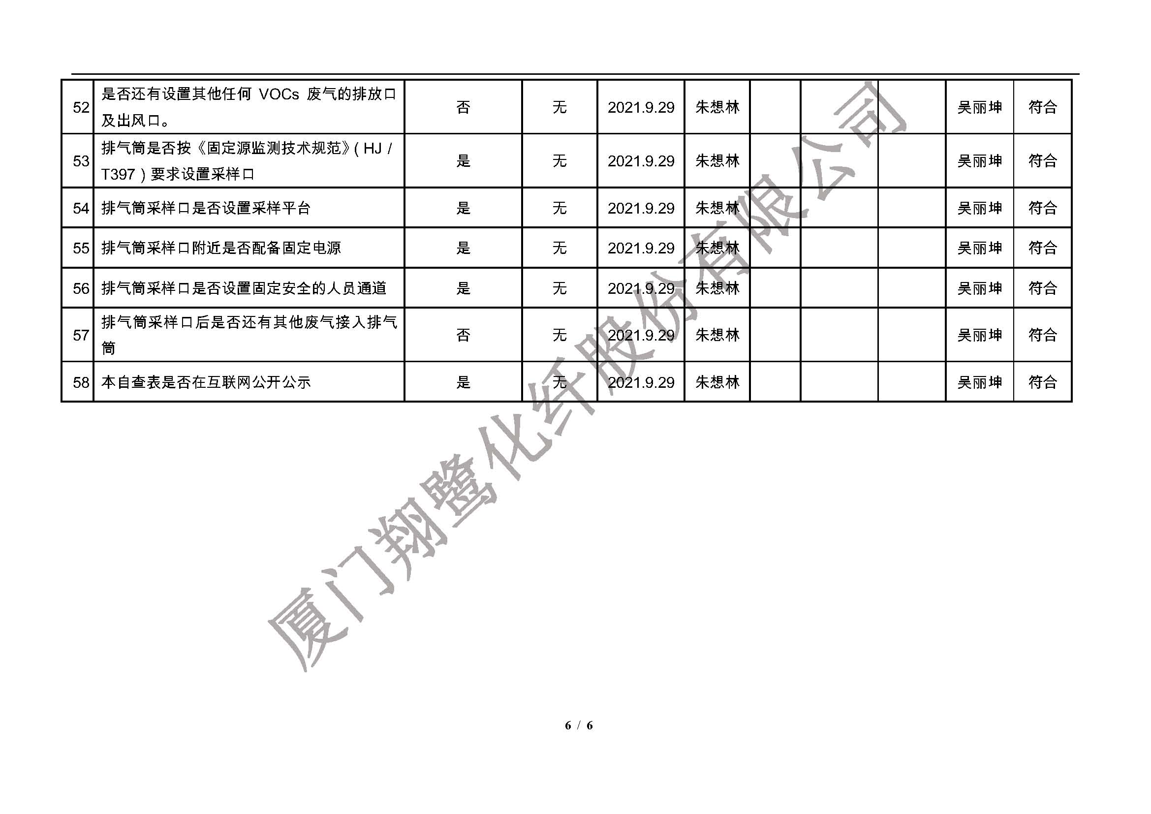 廈門市揮發性有機物污染防治企業自查表(2021年 第二季度)