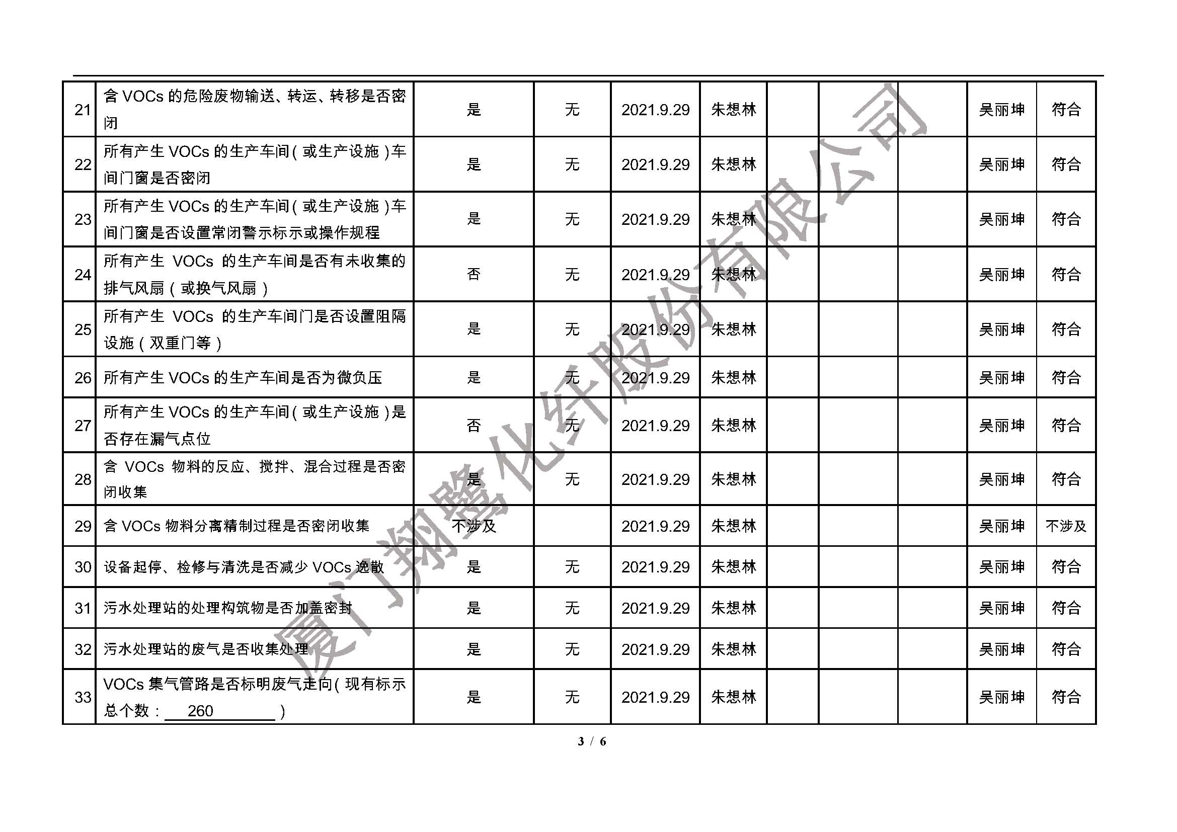 廈門市揮發性有機物污染防治企業自查表(2021年 第三季度)