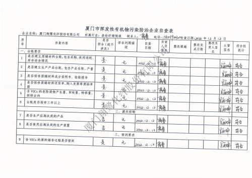 2022年第四季度揮發(fā)性有機物整治企業(yè)自查表